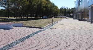 При организации водоотведения рядом с Ледовым дворцом в п. Бачатский Кемеровской области были использованы пластиковые водоотводные системы Gidrolica со стальными решетками.